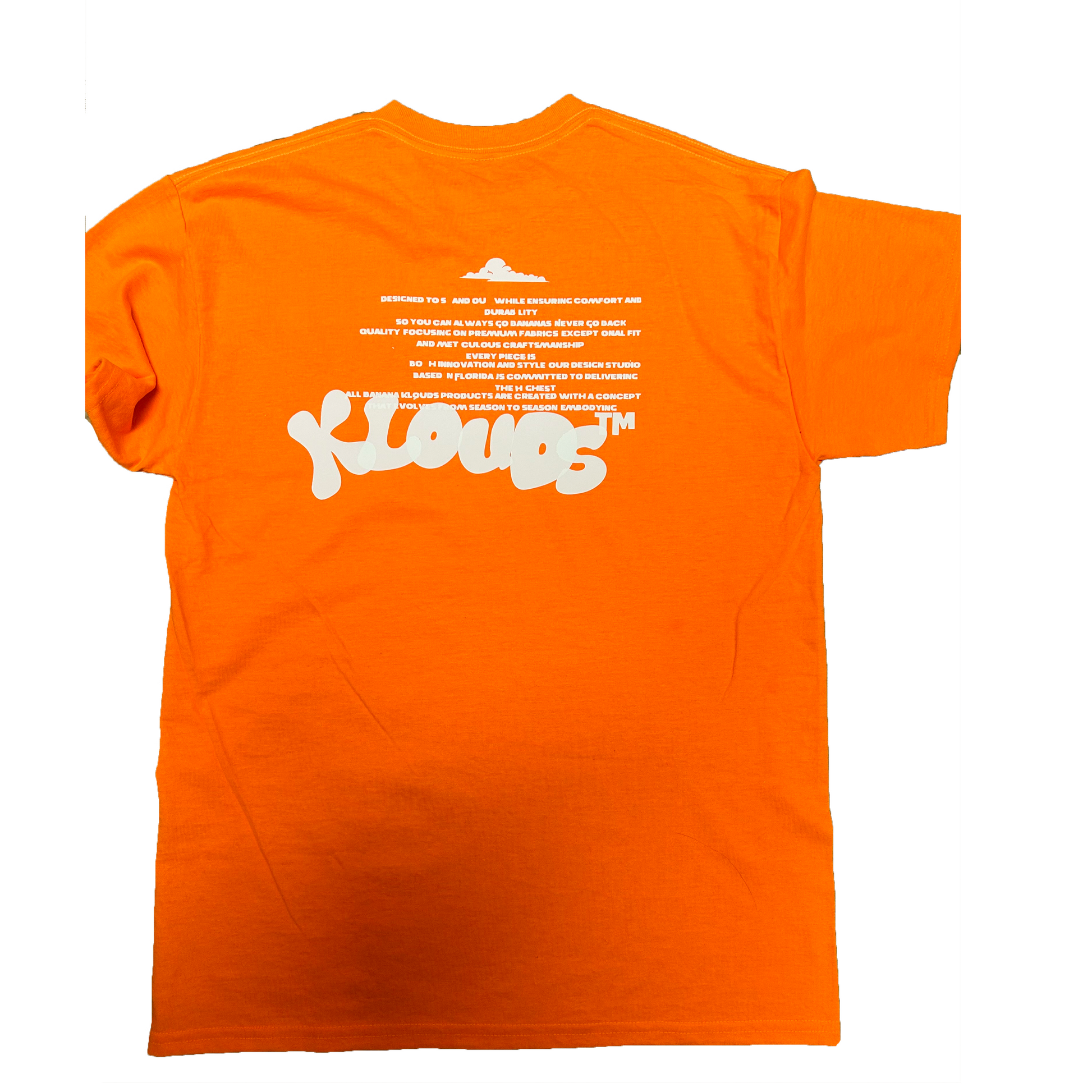 Turn heads with the Banana Klouds “Orange Crème” tee — a bold and vibrant piece that embodies playful confidence and streetwise creativity. Crafted from ultra-soft, breathable cotton, this premium shirt delivers all-day comfort and standout style. Featuring the signature "Klouds™" design on the back in crisp white vinyl and a conceptual cloud theme, it’s built for dreamers who make noise.