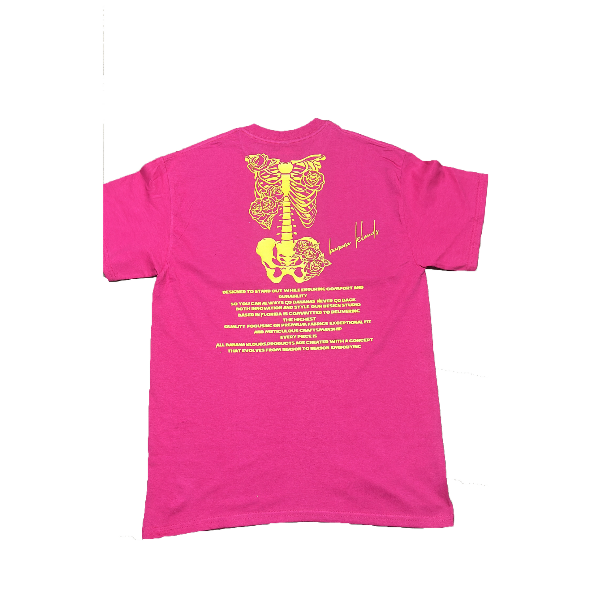 Step into the surreal. The Banana Nightmare Paradise Shirt from Banana Klouds features an electrifying pink canvas with bold yellow print, blending dreamlike visuals with real-world flavor. This seasonal drop reimagines streetwear through skeletal art and vibrant storytelling. Comfort meets creativity in a piece that demands attention from the front and delivers a full story on the back.